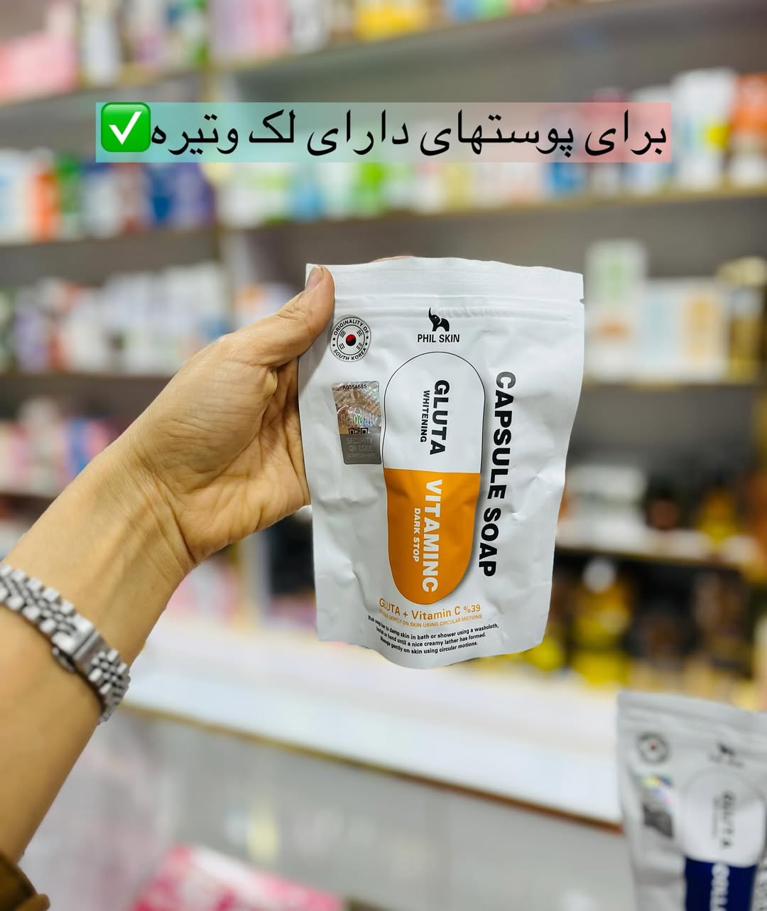 این صابون حاوی انواع ویتامین ها ازجمله ویتامین سی عصاره چای و کلاژنه که هم باعث روشن شدن پوست واز بین رفتن لکه وجوش واکنه میشه😍